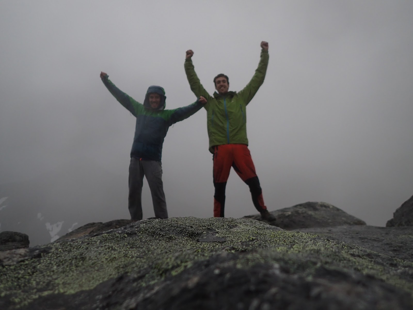 I managed to onsight the route by the skin of my teeth, here we are being goofballs on the summit.